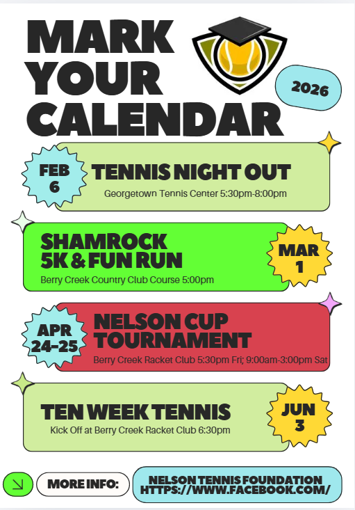 📅 View the full calendar Nelson Tennis Foundation Event Calendar 2026